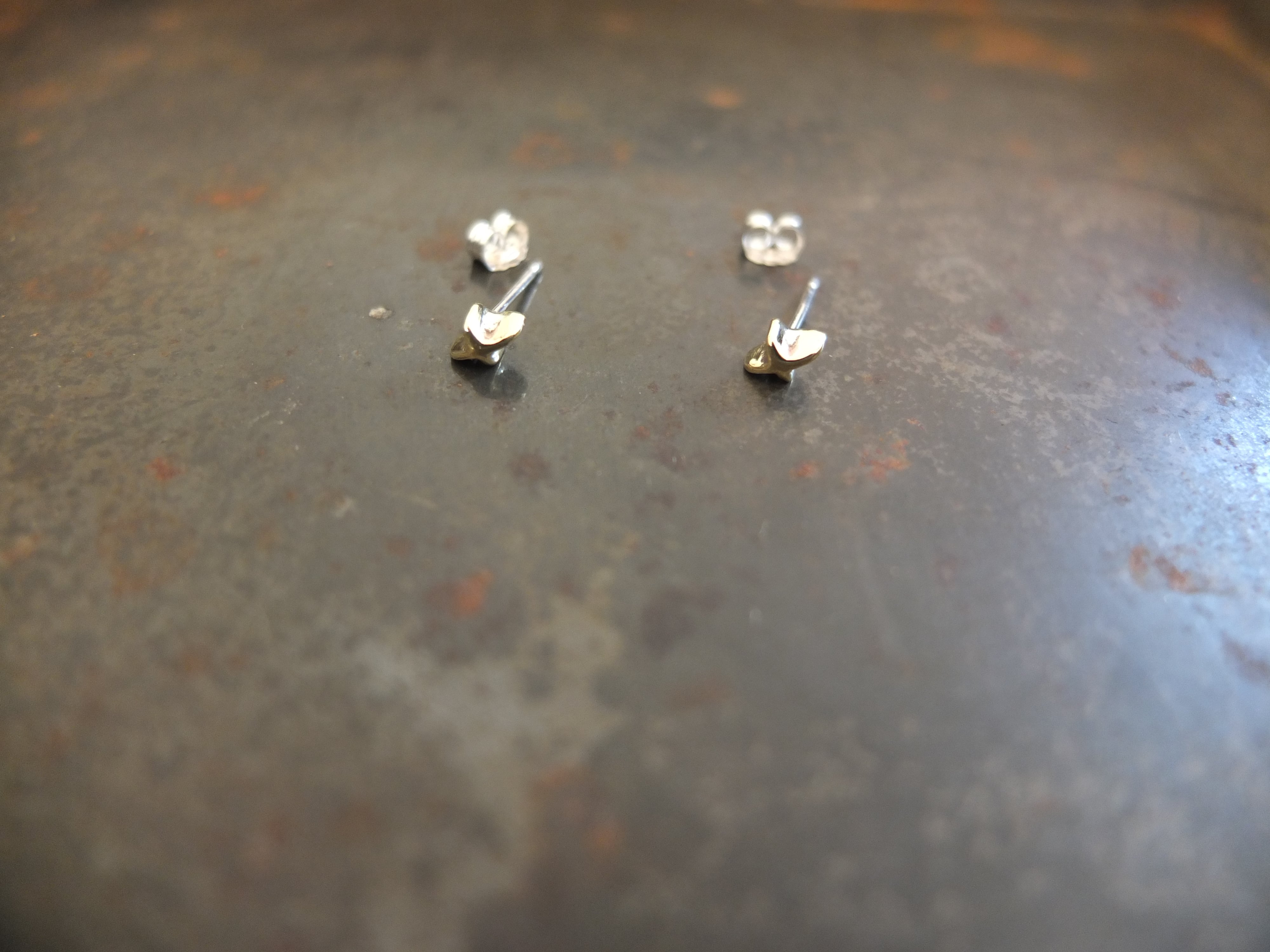 ロストワックスで星粒の形を造り、鋳造工程を経て、ピアス金具をロー付けして、磨き上げて制作しています。